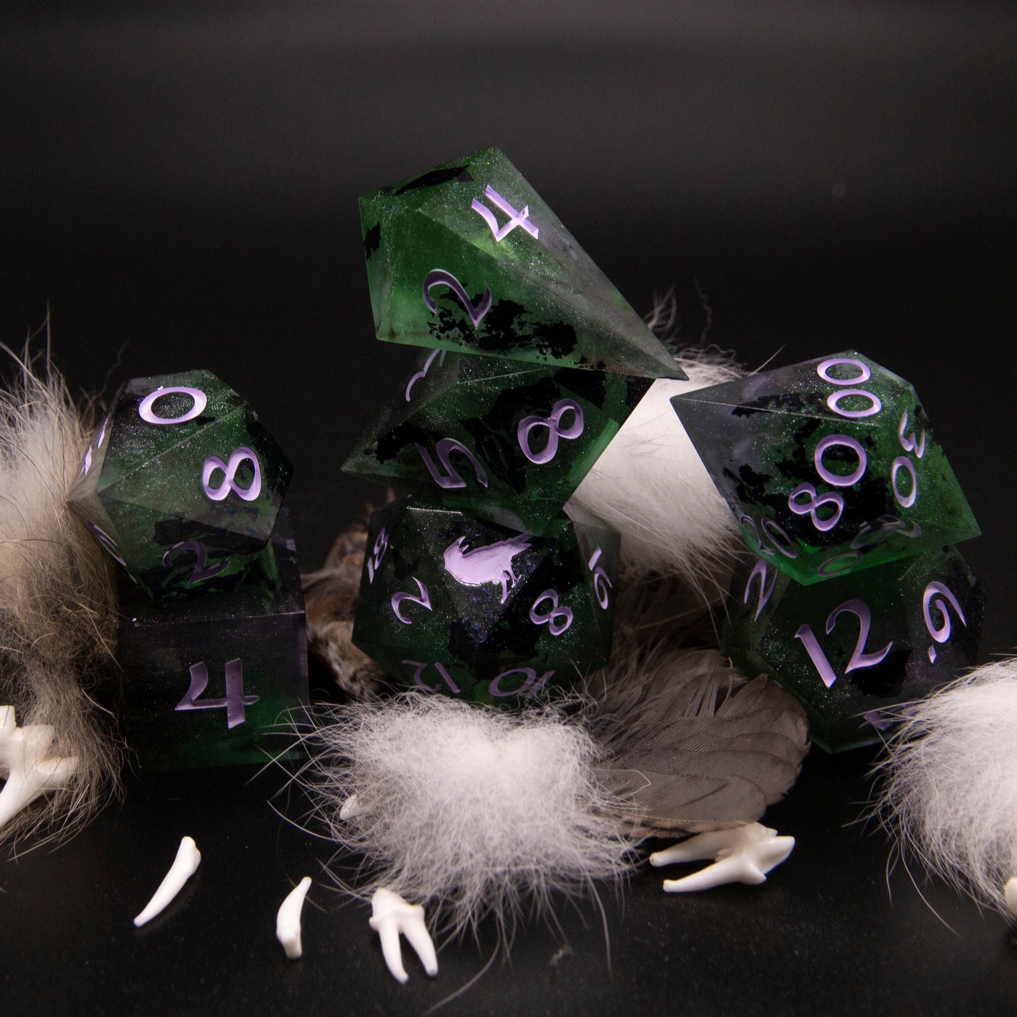 Handmade dark art resin dice for D&D and other TTRPGs.