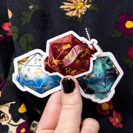 All stickers feature artwork inspired by some of my most popular dice designs.